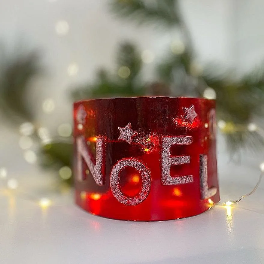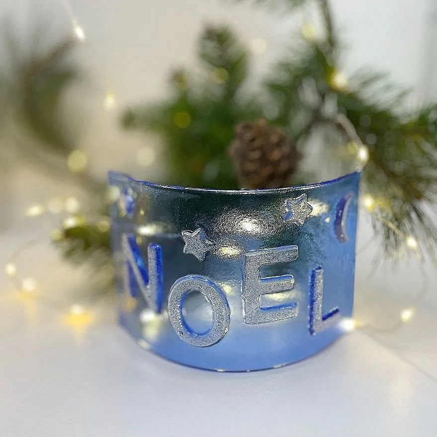 A Christmas "Noel" Candle Curve. Looks homely and Festive with a tea light or mini LEDs behind them. Letters in silver sparkle.